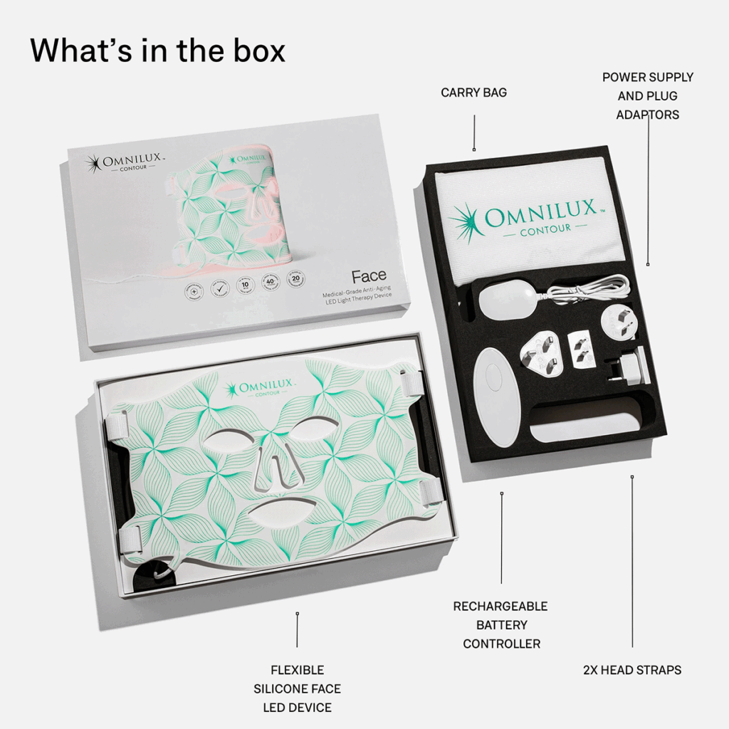 Lightweight, flexible, and cordless, the Omnilux Contour Face molds comfortably to your face for maximum coverage and comfort. Its sleek design makes it easy to integrate into your daily routine—whether you’re working, relaxing, or getting ready for bed.